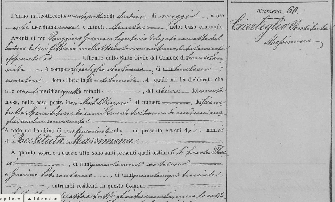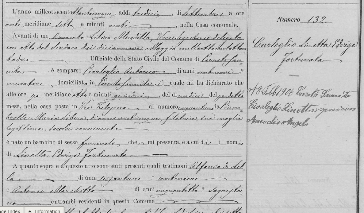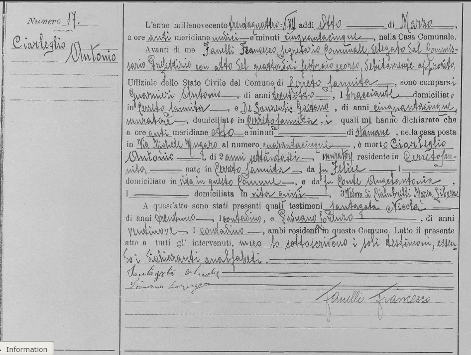 Antonio Ciarleglio Death Certificate Michele Amodio Birth Certficate - Page 1 Michele Amodio Birth Certficate - Page 2 Linetta Ciarleglio Birth Certficate - Page 1 Linetta Ciarleglio Birth Certficate - Page 2 Restituta Ciarleglio Birth Certficate - Page 1 Restituta Ciarleglio Birth Certficate - Page 2